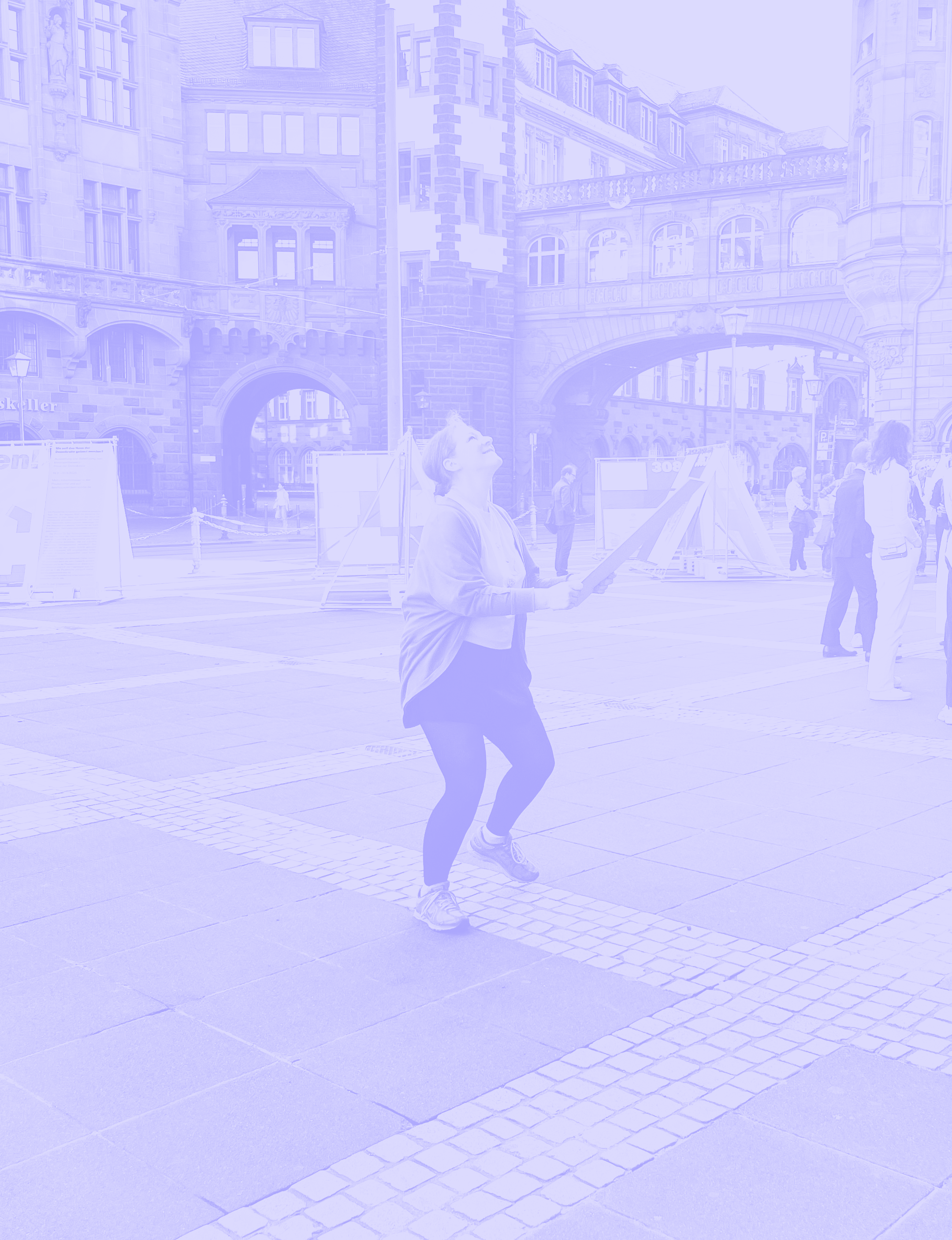 Wir laden euch dazu ein, neue Denk- und Kreativ-Methoden, Tanz-und Bewegungstechniken im öffentlichen Raum kennenzulernen und eure Stadt mit diesen Mitteln spielerisch zu erkunden.